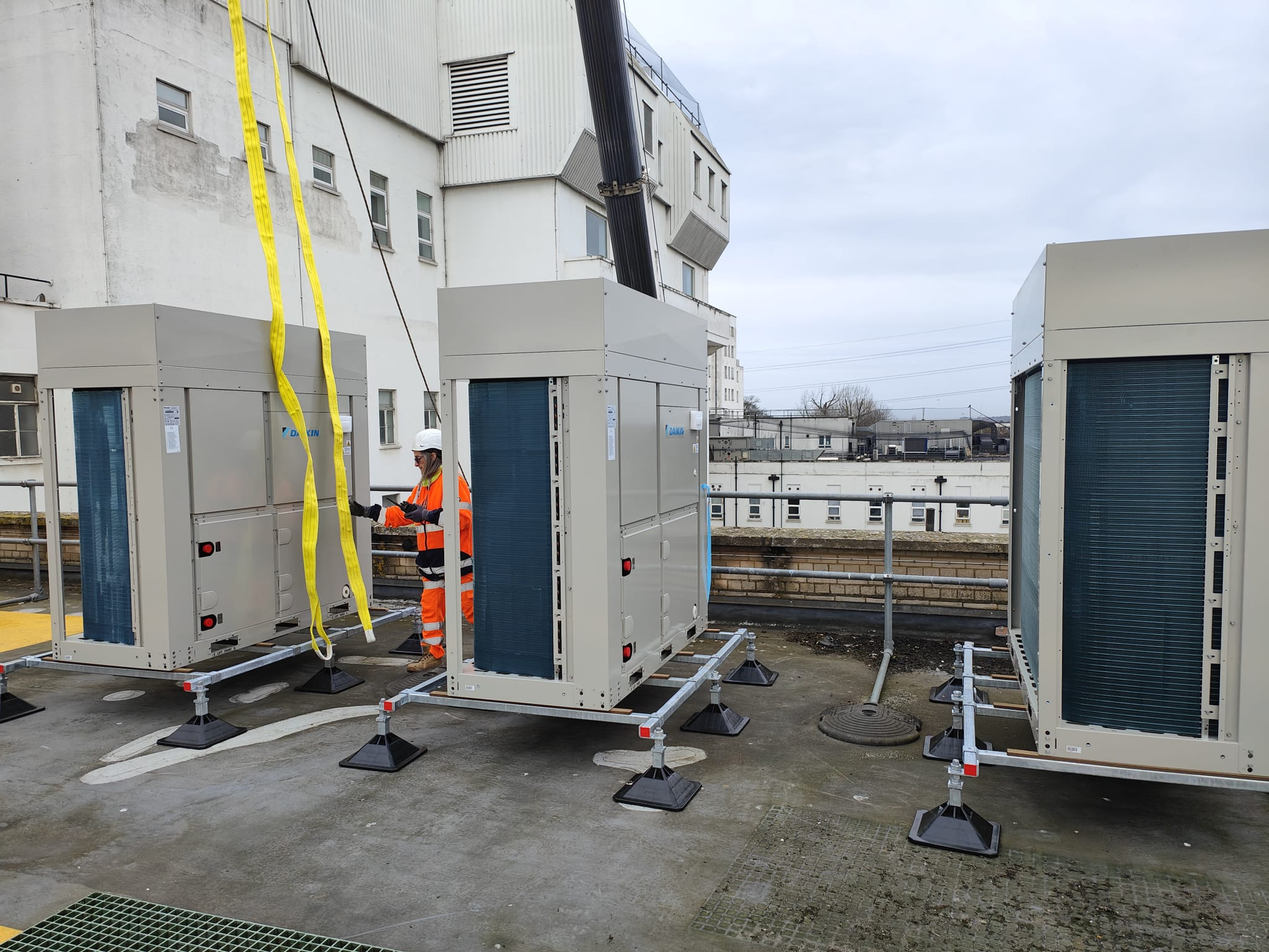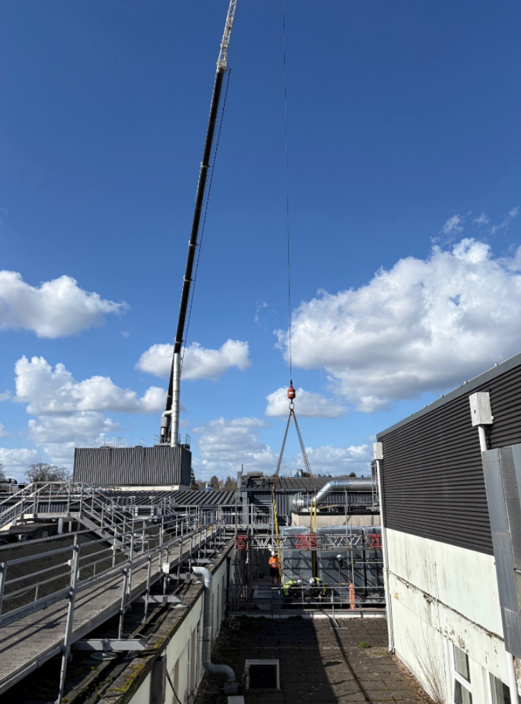 HANEVO have successfully completed a major milestone on our project from Frimley Health NHS Foundation Trust, with the installation of the new Air Handling Unit on the roof adjacent to the Theatre 7 being upgraded.