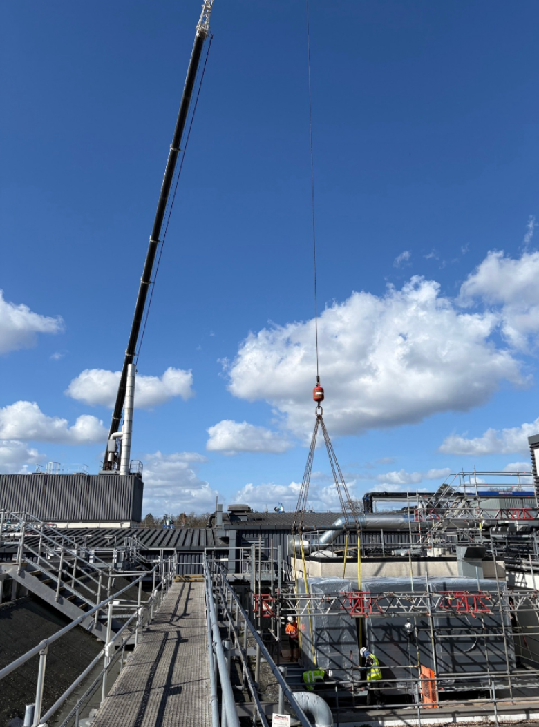 In planning the works, we worked closely with the AHU suppliers to optimise the section sizes to suit available crane capacity, including removal of cooling coils and fans to be lifted separately to bring weights down to an acceptable limit.